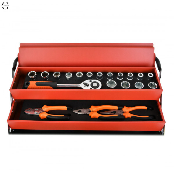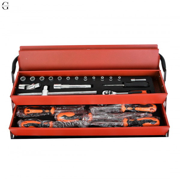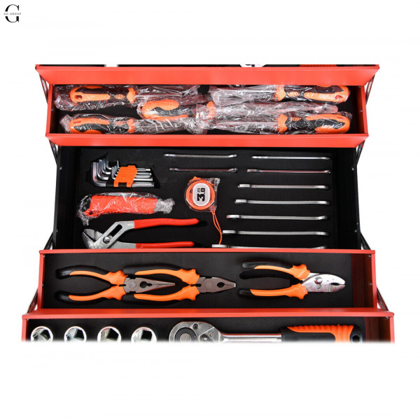 Набір інструментів у металевому консольному кейсі 168 предметів (червоний + чорний, 3 секції)