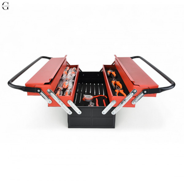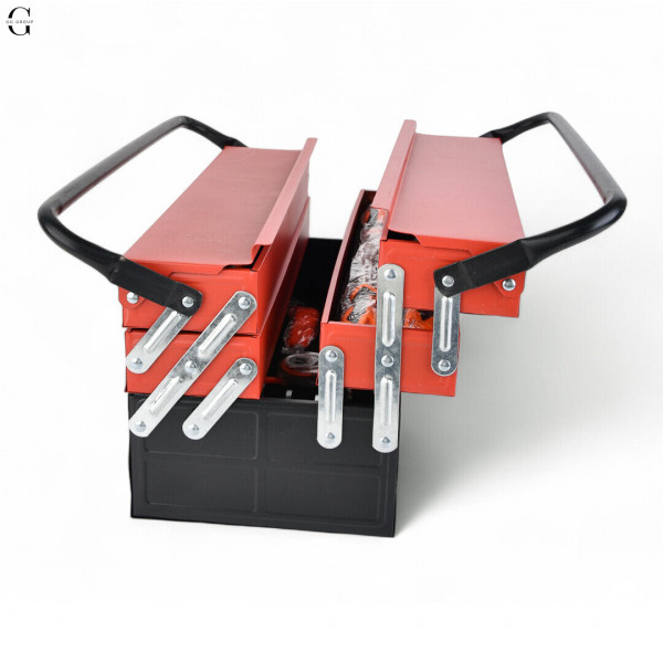 Консольна конструкція з трьома секціями забезпечує швидкий доступ до шкірного інструменту, а металевий корпус гарантує міцність та довговічність.