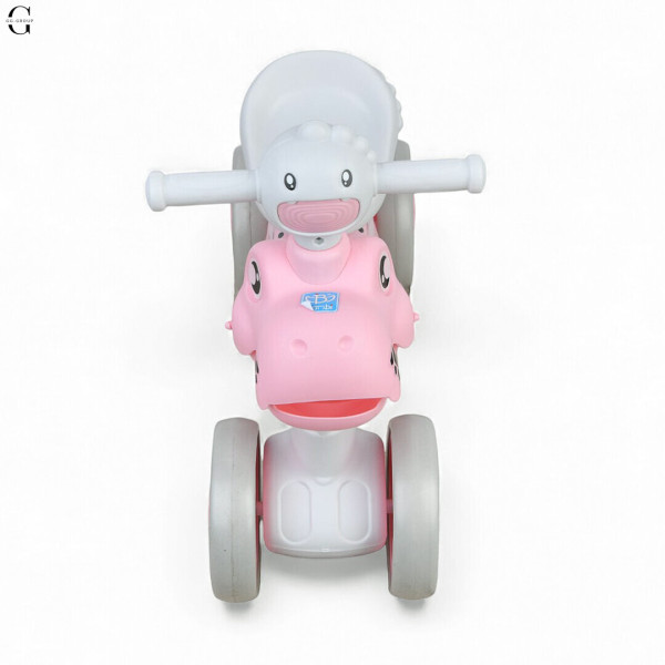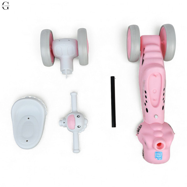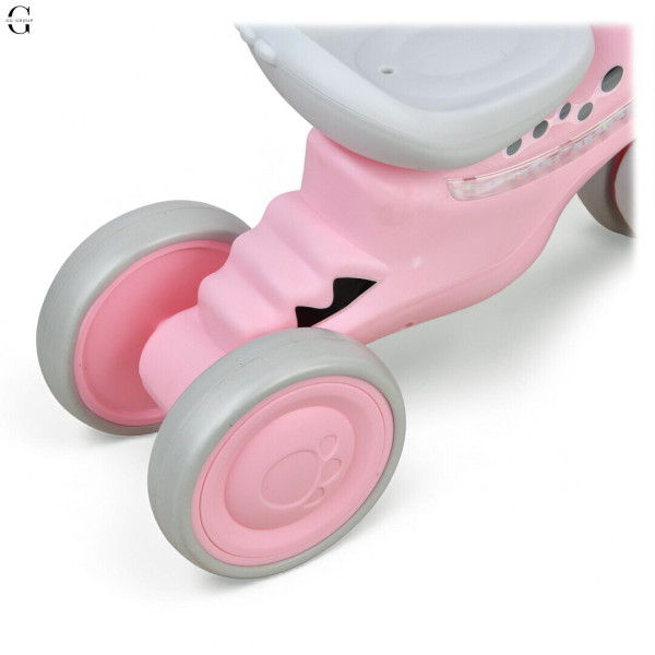 Корпус подсвечивается при воспроизведении музыки, что делает каждую прогулку яркой и незабываемой. Ребенок может самостоятельно управлять транспортом, активно двигаться и придумывать собственные игровые сюжеты.
