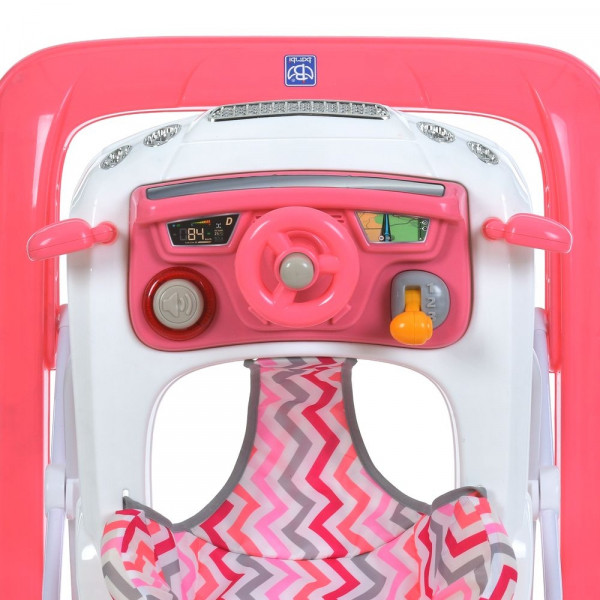 Модель изготовлена из комбинации металла, прочной пластмассы и мягкой ткани, что обеспечивает надежность конструкции и комфорт для ребенка. Музыкальные и световые эффекты делают процесс обучения ходьбе веселым и увлекательным, способствуя развитию слуха, зрения и координации движений.