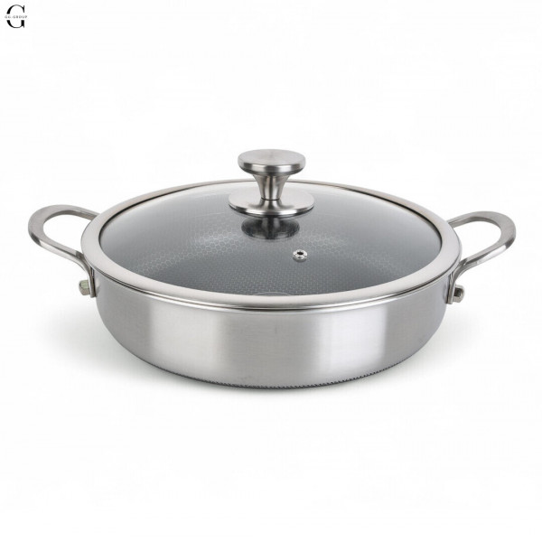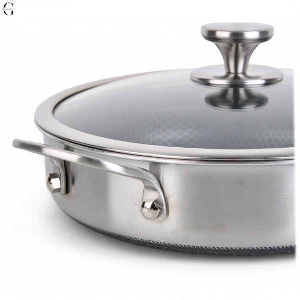 Внутреннее покрытие с антипригарной шестиугольной структурой (Honeycomb) обеспечивает равномерный нагрев и предотвращает прилипание продуктов.