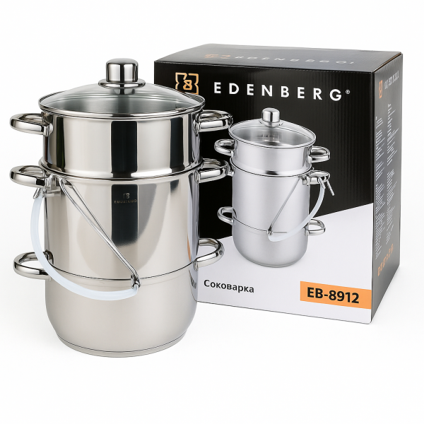 Соковарка Edenberg EB-8912 (8 л, Ø26 см) – надежная помощница для приготовления натуральных соков без консервантов.