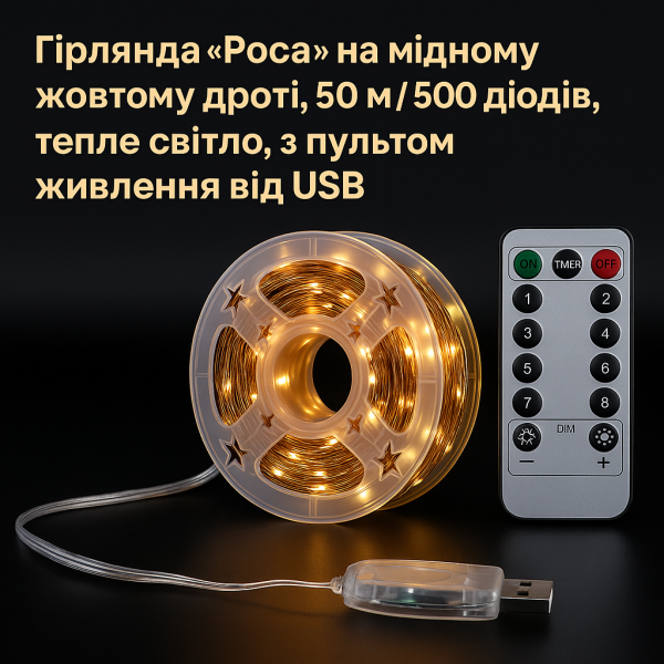Гирлянда Росса 50 м/500 Mini-LED, IP20, теплый свет, USB + пульт