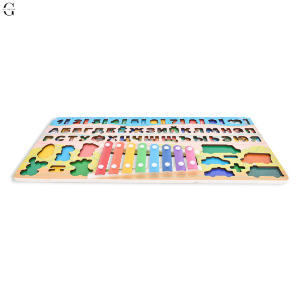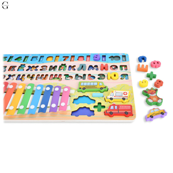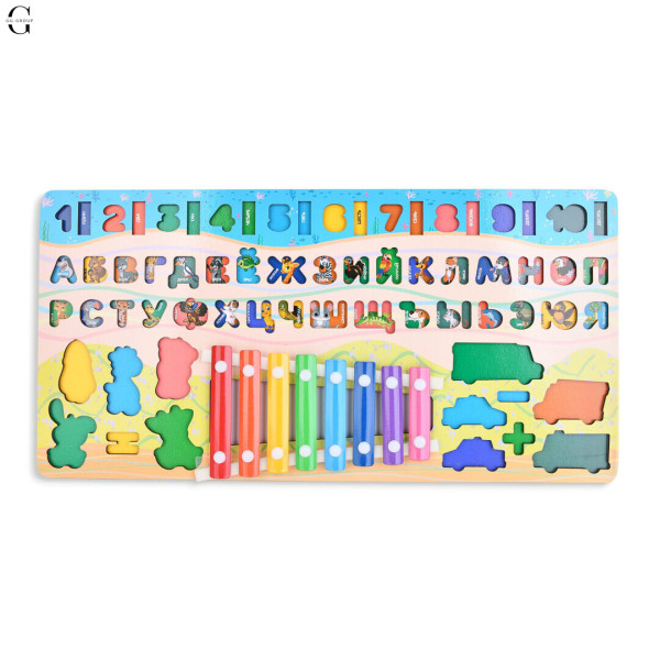 Мультифункциональность 4-в-1: ксилофон, сортеры, рамки-вкладыши, магнитная рыбалка.