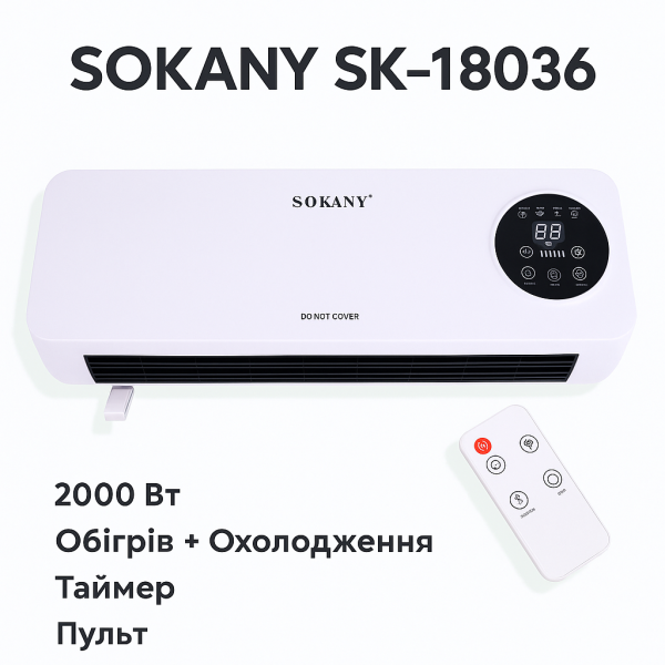 Настенный тепловентилятор Sokany SK-18036 (белый, 2000 Вт) – современный обогреватель нового поколения с функциями обогрева и охлаждения воздуха .