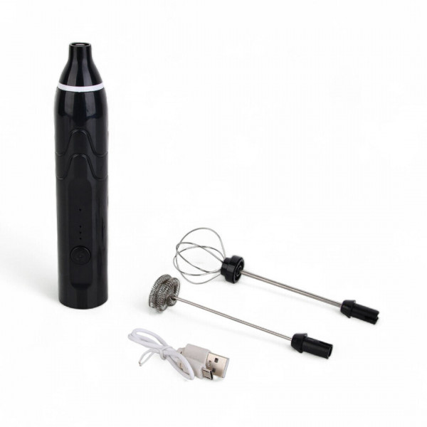 Капучинатор аккумуляторный 1200 мАч бесшумный с USB зарядкой 2 насадки Sokany SK-201A Черный