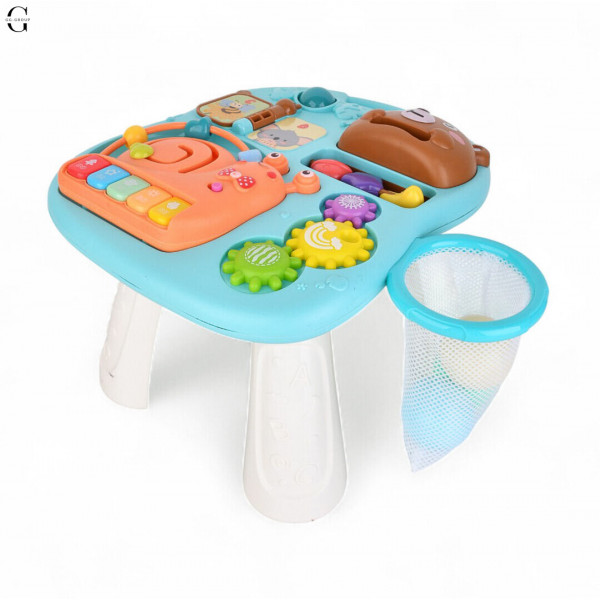 Съемное пианино в виде слимака с подсветкой и мелодиями создает яркую атмосферу во время игры. Пальчиковый лабиринт, подвижные шестеренки и интерактивные элементы помогают развивать мелкую моторику, логику и координацию движений. А шарики с сеткой превращают игру в настоящее веселье!