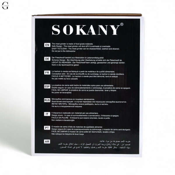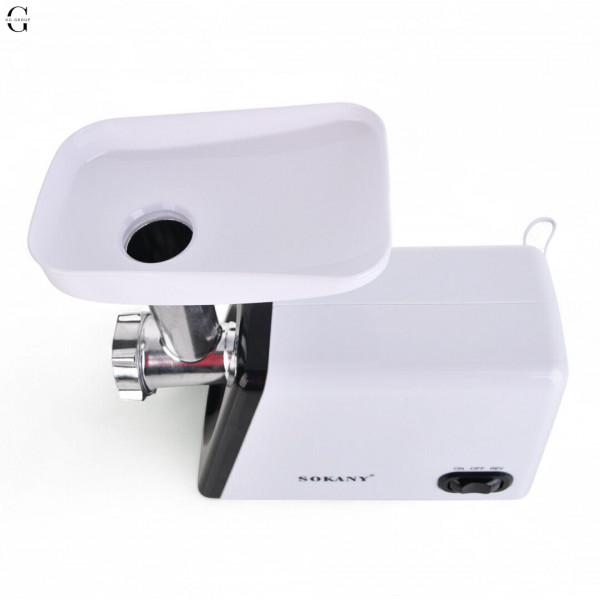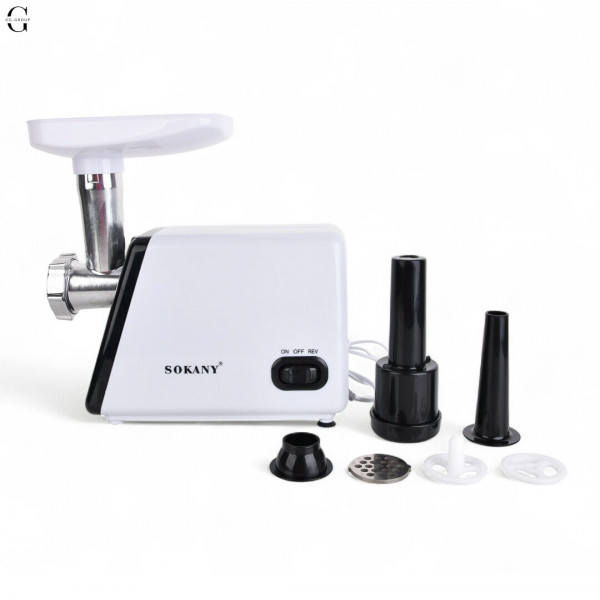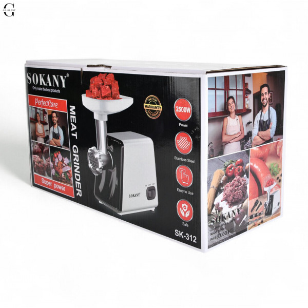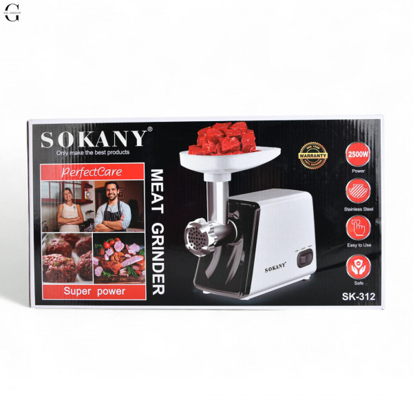 Професійна багатофункціональна електрична м'ясорубка Sokany SK-312 - ідеальне рішення для ефективної переробки м'яса та інших продуктів на вашій кухні. Основні характеристики: Напруга 110-240 В, потужність 2400 Вт. Цей прилад має широкий діапазон напруги, що робить його універсальним для використання в різних електроприладах. Потужність 2400 Вт дозволяє легко обробляти різні продукти харчування. Лита алюмінієва головка подрібнювача. Міцна насадка-подрібнювач з литого алюмінію забезпечує надійність та тривалий термін служби м'ясорубки. Ніж із харчової нержавіючої сталі. Ножі з харчової нержавіючої сталі відрізняються високою міцністю, зносостійкістю та стійкістю до корозії. У процесі швидкого подрібнення леза рухаються під кутом 45°, забезпечуючи ефективне та рівномірне подрібнення. Корпус виготовлений із пластику. Легкий і міцний корпус виготовлений з високоякісного пластику і гарантує зручність використання і простоту догляду. Ідеально підходить для обробки м'яса, овочів та інших продуктів, робить процес приготування їжі швидким та зручним. Сучасний дизайн та високотехнологічні матеріали роблять цю м'ясорубку відмінним доповненням до вашої кухні. До комплекту входять: 1 x Електрична м'ясорубка 3 x Ріжучі пластини (7 мм, 5 мм, 3 мм) 1 x насадка для ковбаси 1 x штовхач для продуктів 1 x насадка для кебаба 1 x спіраль 1 x лезо 1 x адаптер Довжина шнура: 1 м