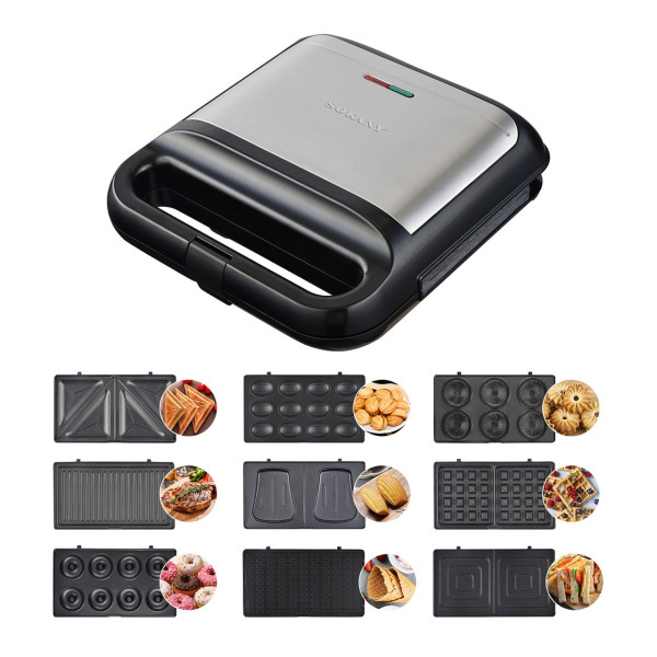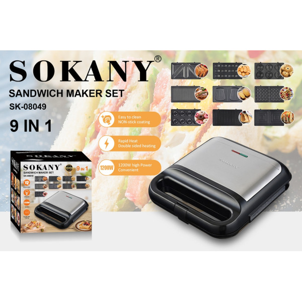Мультимейкер Sokany SK-08049 (9 в 1) — це компактний, універсальний і неймовірно зручний кухонний помічник, який замінює одразу кілька окремих пристроїв. Завдяки 9 змінним насадкам він легко перетворюється на сендвічницю, вафельницю, гриль та багато іншого. З ним ви зможете готувати різні страви — від хрустких сендвічів до ніжних бельгійських вафель чи гриль-овочів.