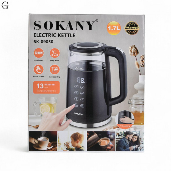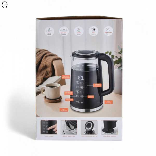 Електрочайник SOKANY SK-09050 (1,7 л, 2200 Вт) - це сучасний скляний чайник преміум-класу з сенсорним управлінням та функцією точного регулювання температури.